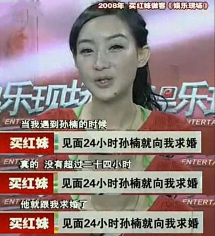 她的功绩赶巧飞腾期,孙楠在一档节目上与她结缘,外传孙楠对买红妹相识24小时后就单膝跪地向她求婚。