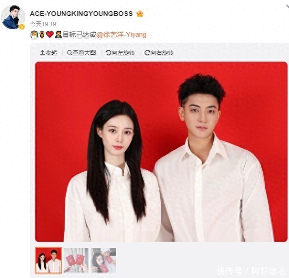 黄子韬和徐艺洋晒出成亲证,官宣成亲了。
