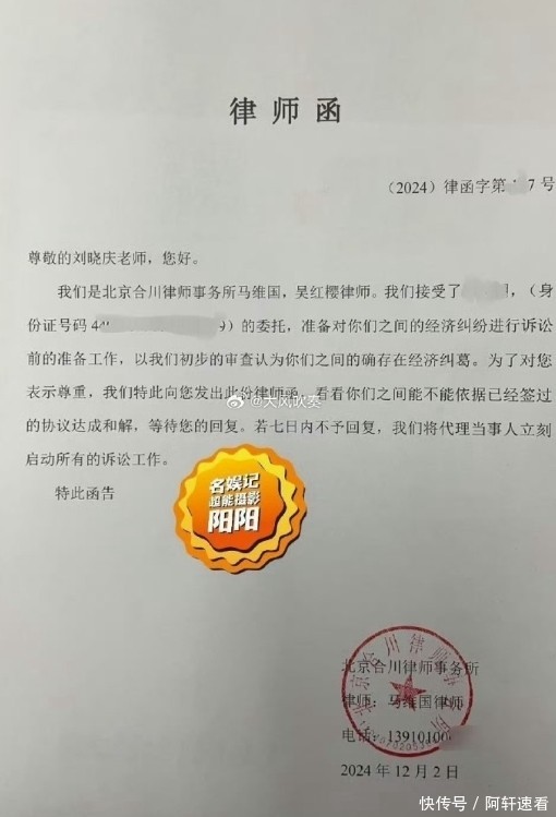 讼师函中说,【他们采用了50岁小男友的奉求,正在准备你俩之间的诉讼前准备职责。你望望,你能不成按照之前说得飞速付钱,否则7日后咱们就要驱动诉讼了】。
